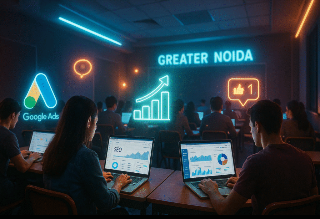 Greater Noida is home to many tech companies, startups, and educational institutes. Its proximity to Noida and Delhi gives students access to internships, workshops, and job fairs. The city is also affordable for students, making it perfect for learning and growing in digital marketing.